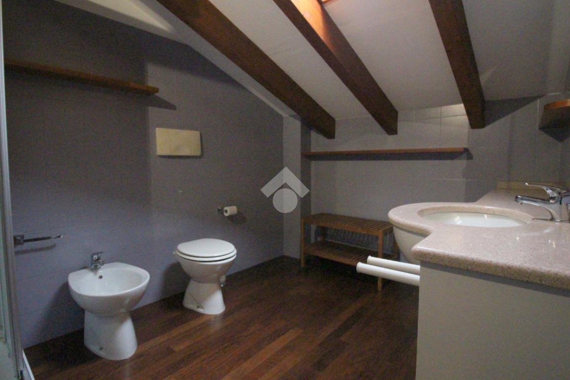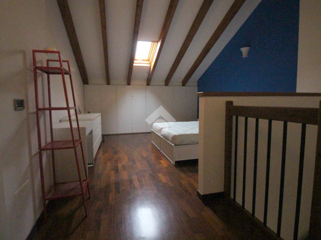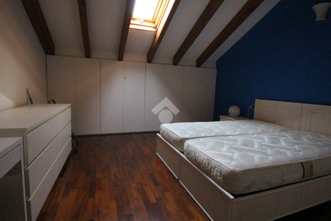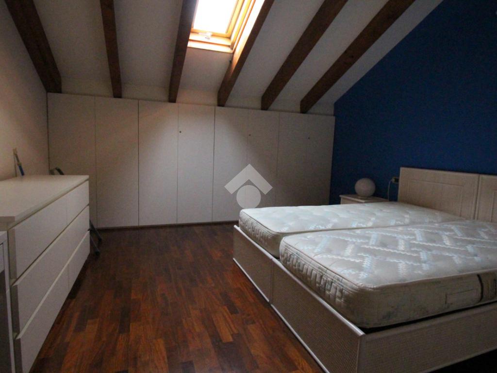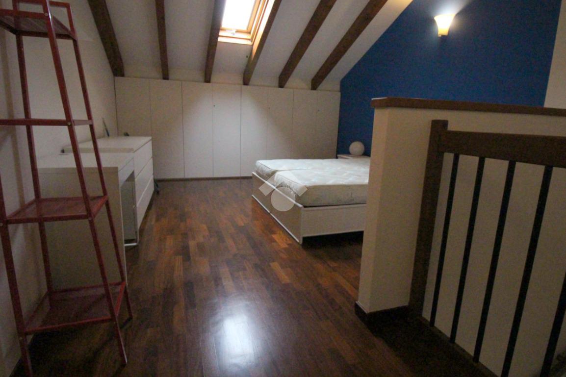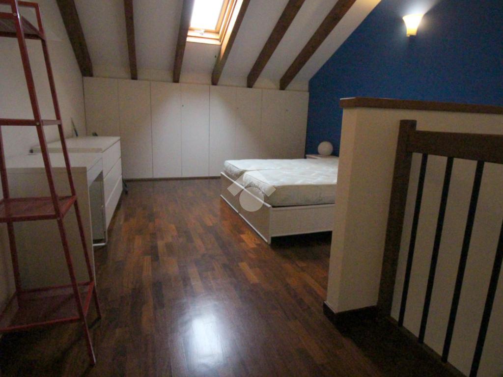 Tramite la scala interna si accede al piano superiore con annesso locale sottotetto, rifinito in parquet, caratterizzato dalle travi a vista in legno che rendono l'ambiente caldo e accogliente, formato da un'ampia camera matrimoniale, dal bagno finestrato e da un vano accessorio adibito a comoda cabina armadio.