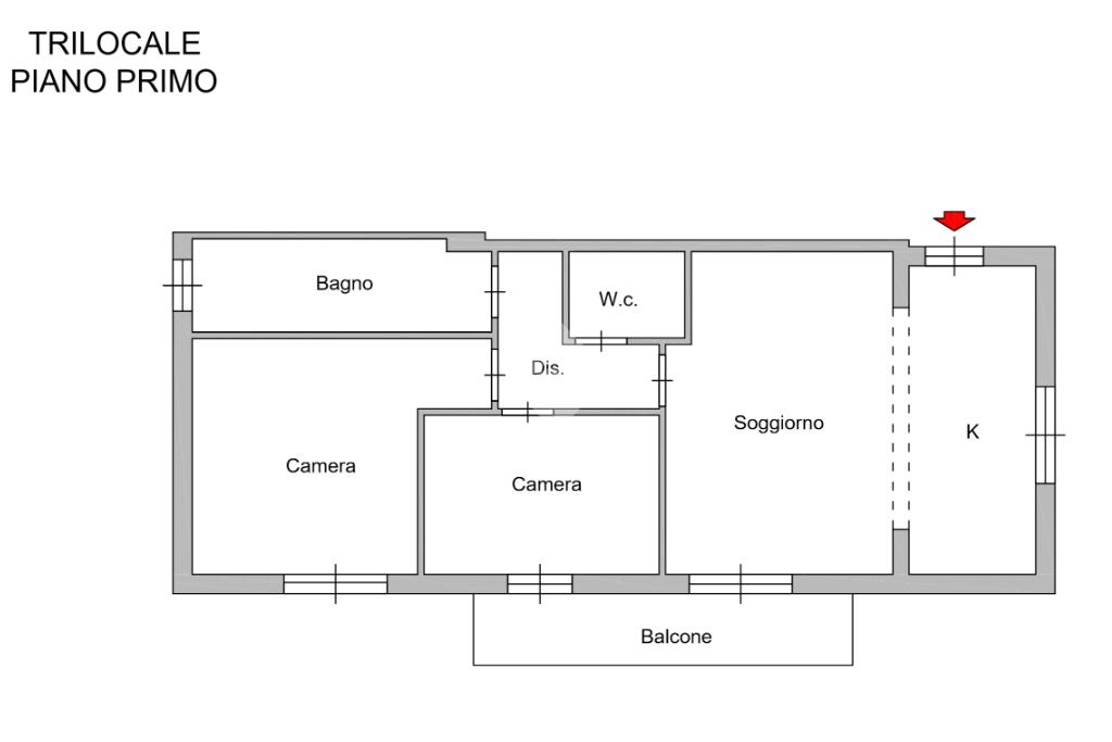 Situato al 1° piano, l'immobile è composto da tre locali con cucina abitabile e doppi servizi.