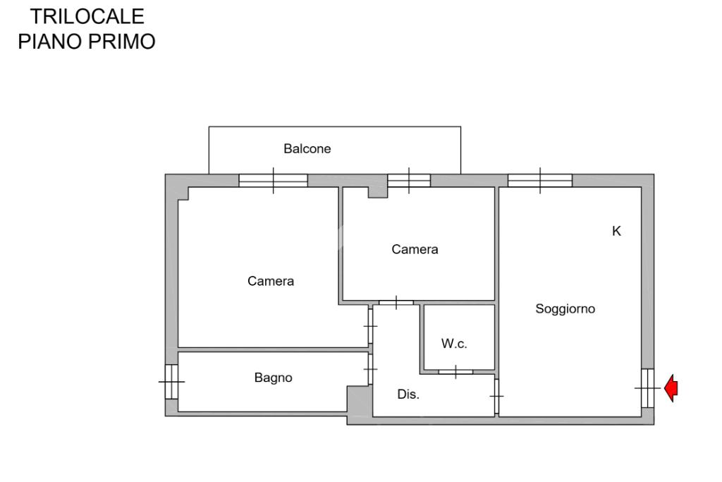 Situato al 1° piano, l'immobile è composto da tre locali con cucina a vista e doppi servizi.
