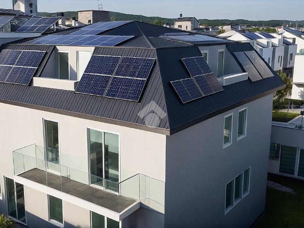 Il riscaldamento è a pavimento, con pompa di calore con fotovoltaico dedicato.