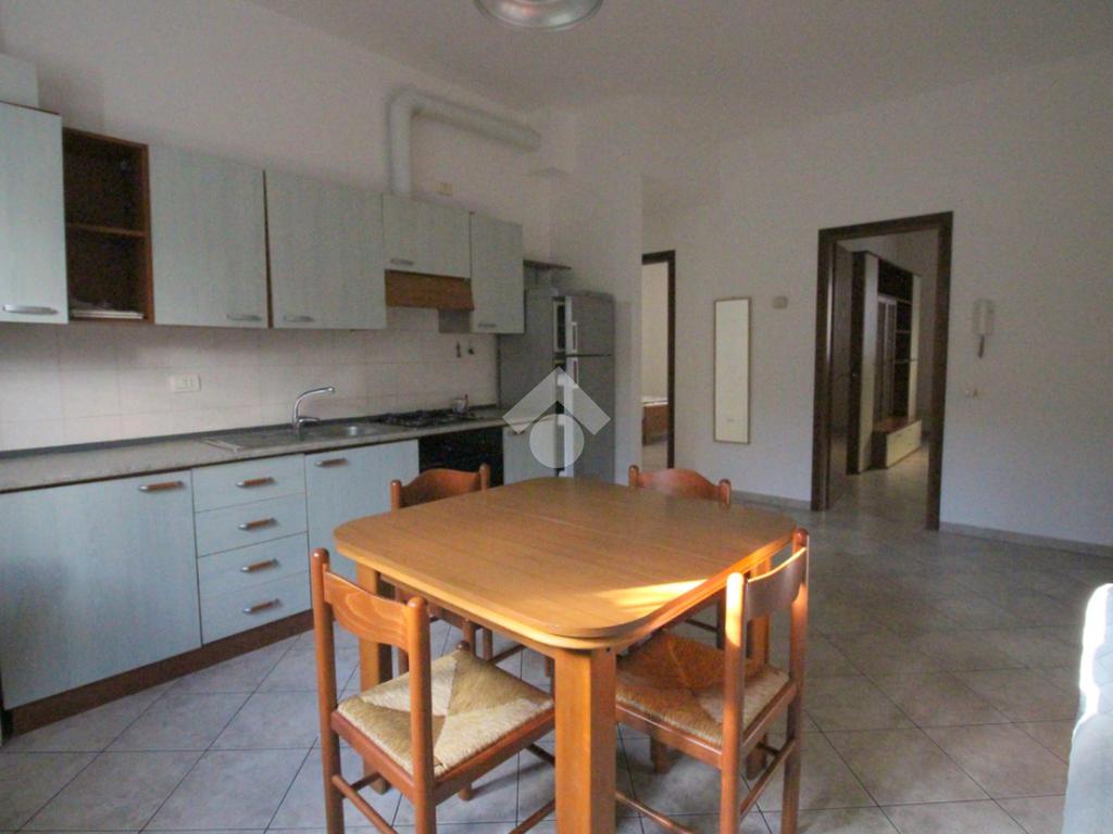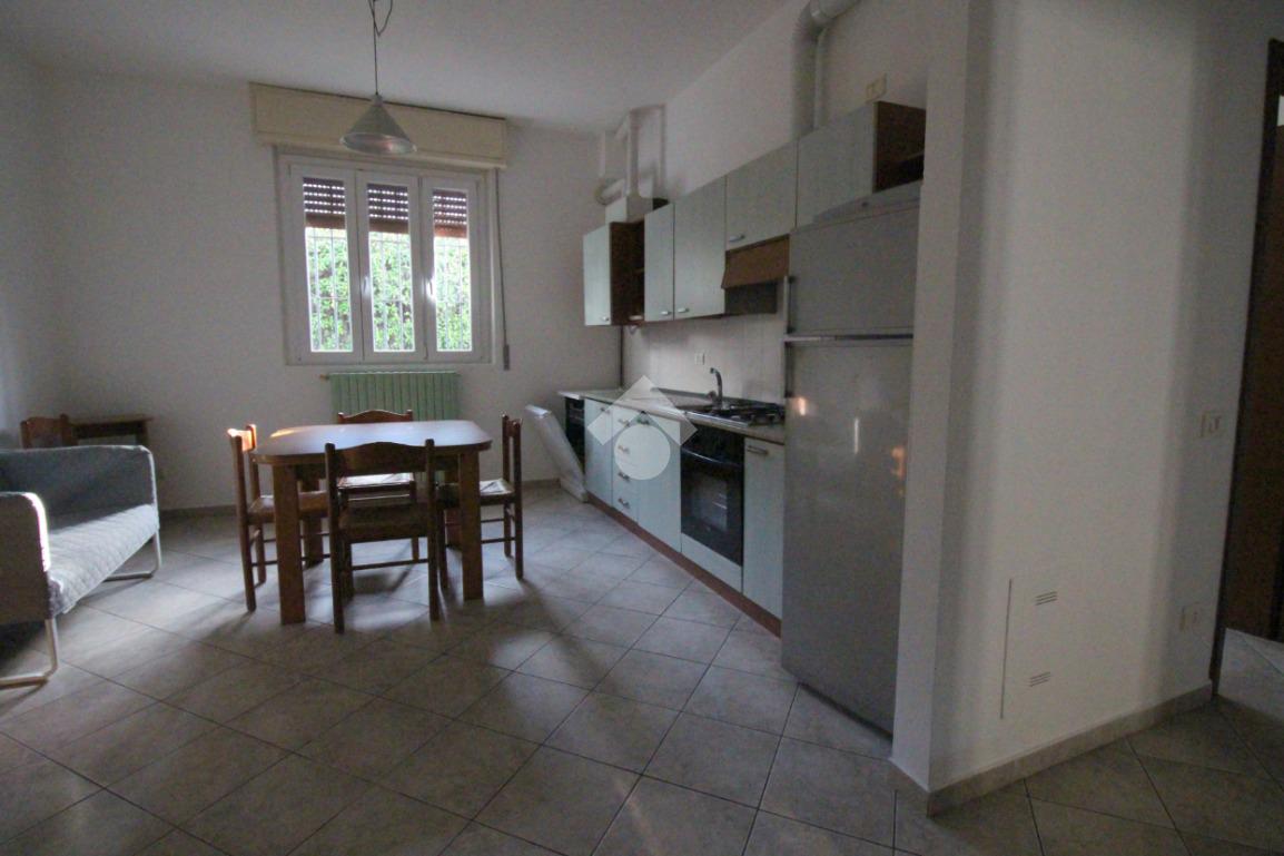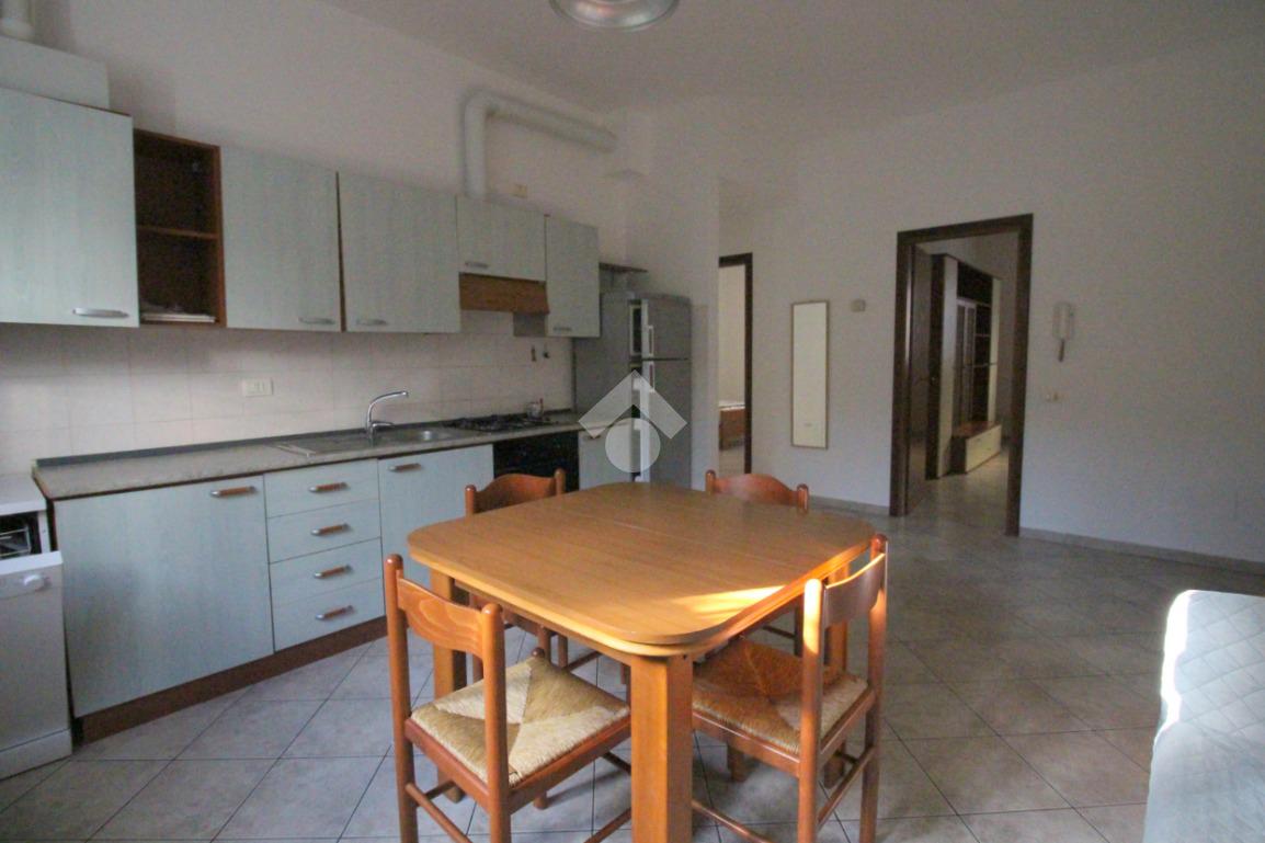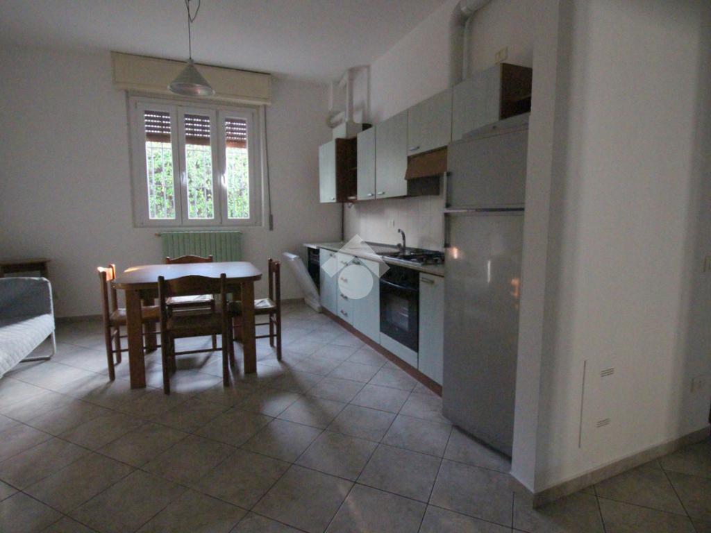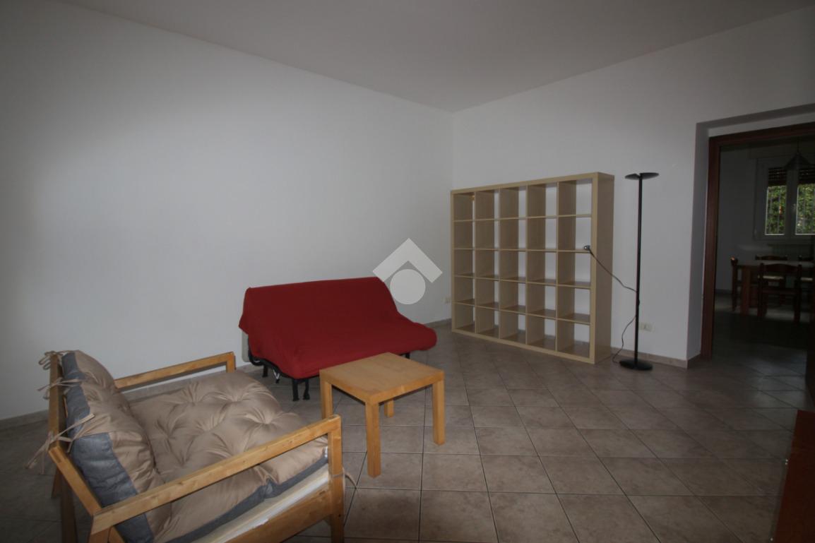 L'ingresso è direttamente nel soggiorno luminoso con cucina a vista completamente attrezzata.