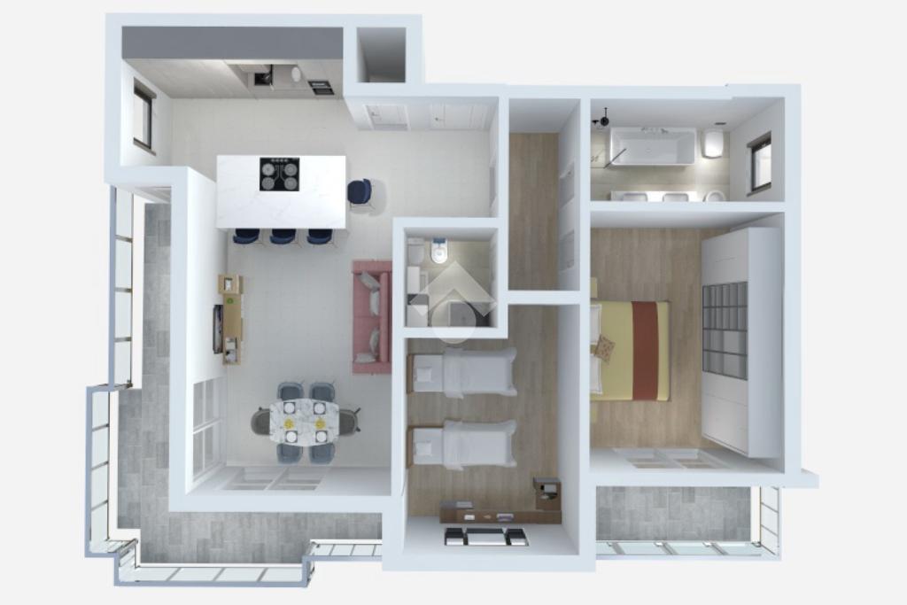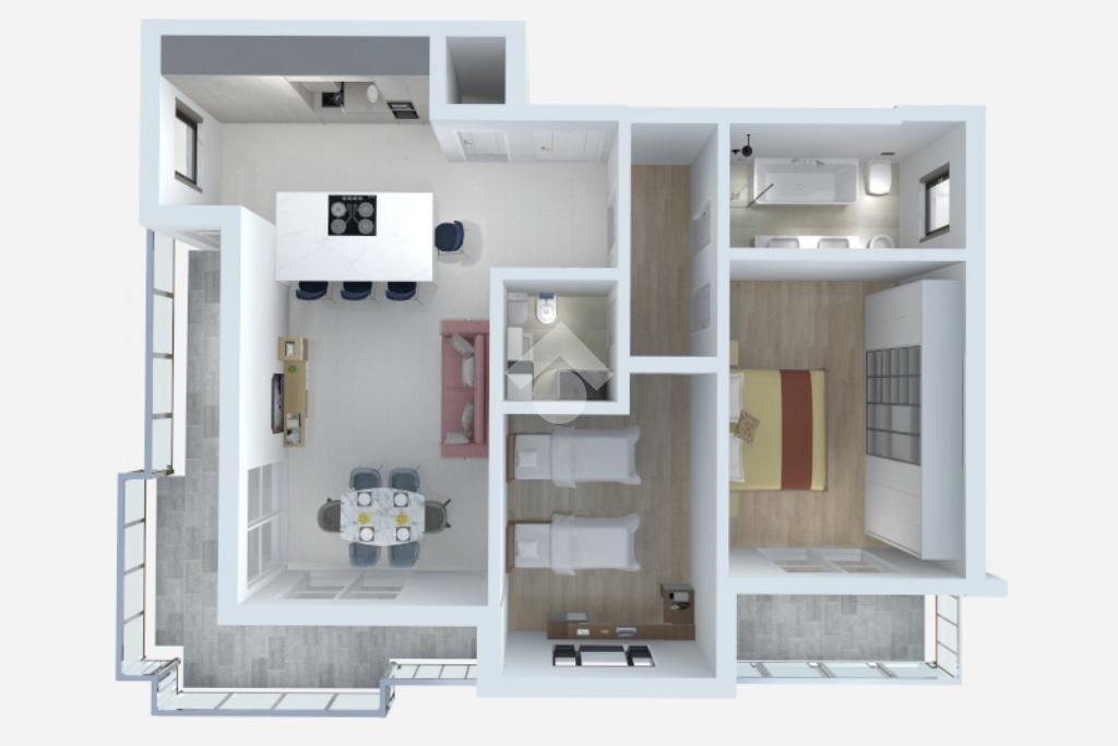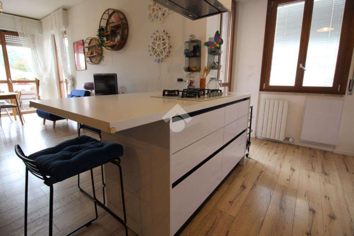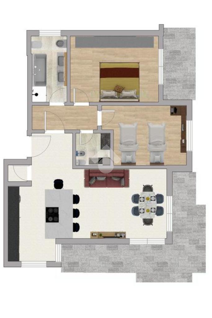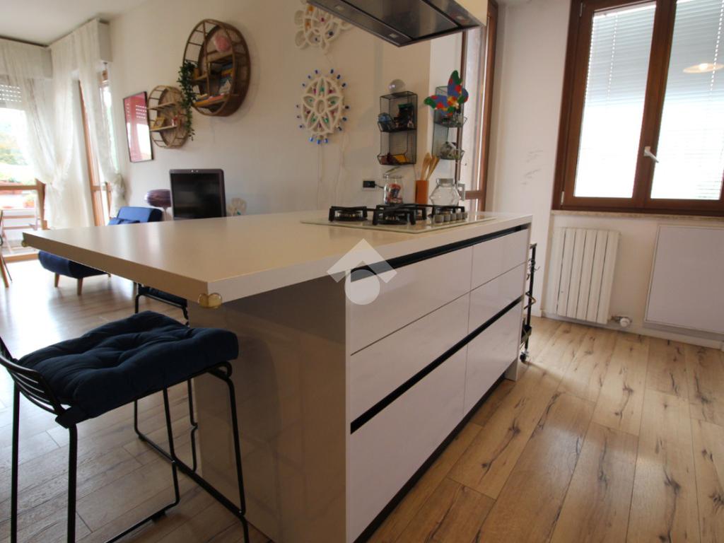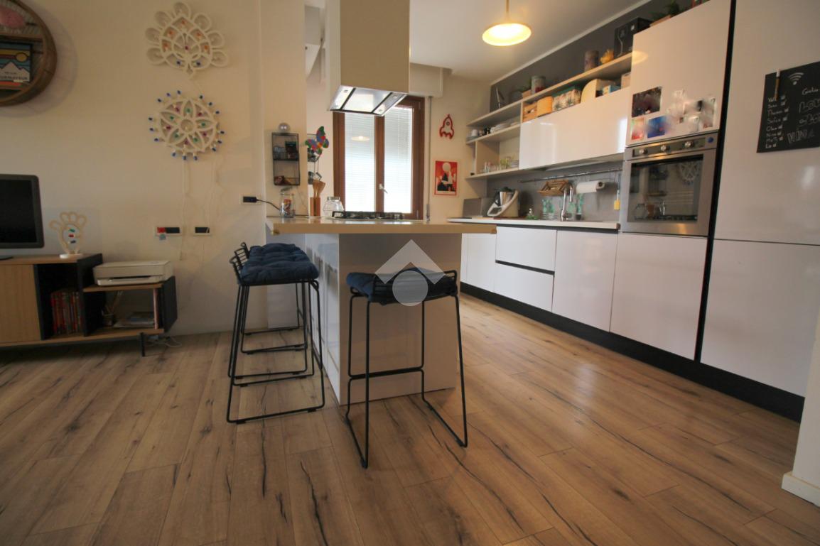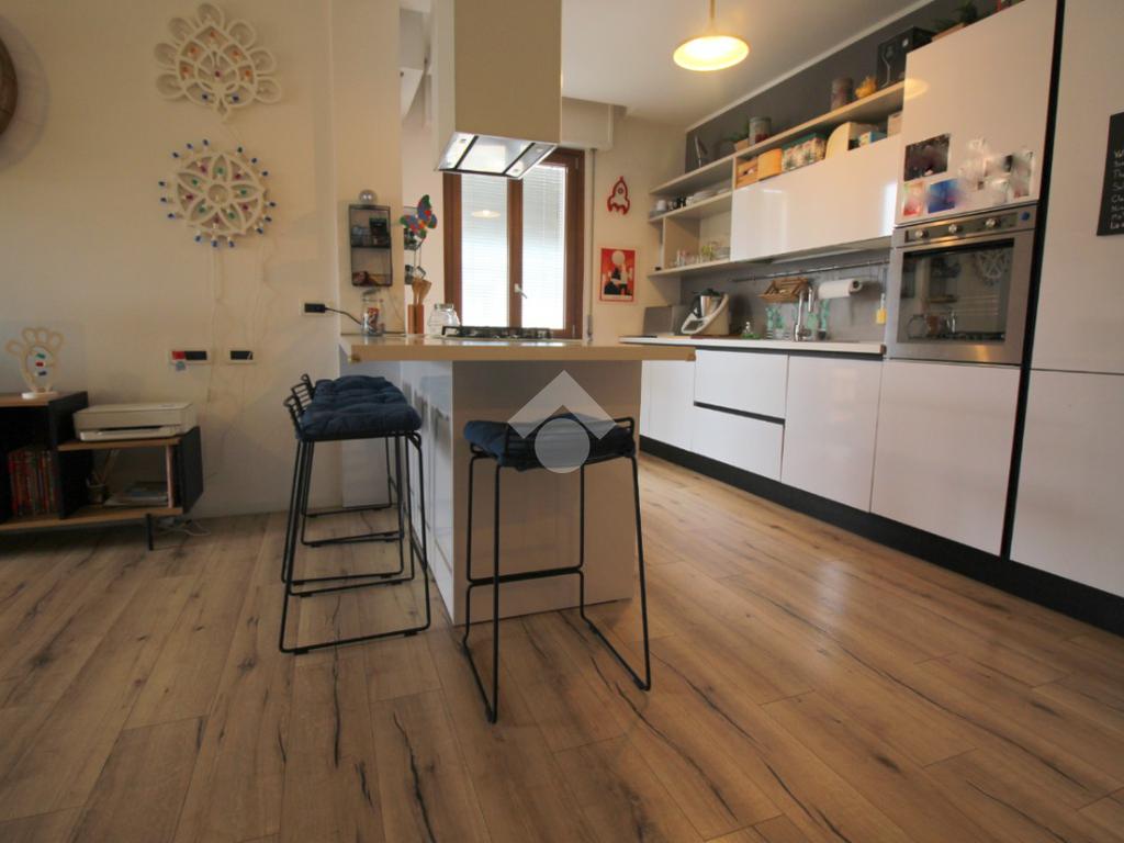 La cucina durante la ristrutturazione è stata resa a vista sul soggiorno per creare un ambiente moderno e dotata di ogni comfort, anch’essa con finestra e porta finestra con uscita sul balcone. A completare la zona giorno è presente un pratico e funzionale ripostiglio