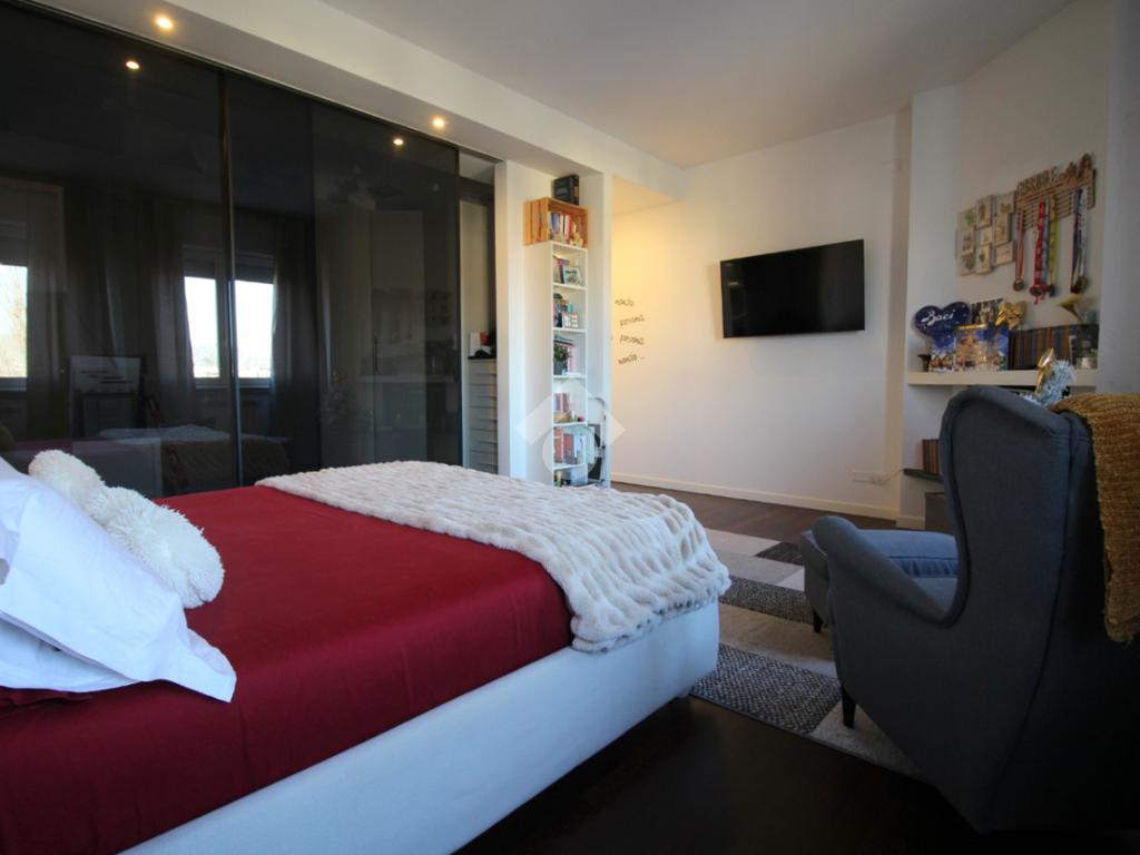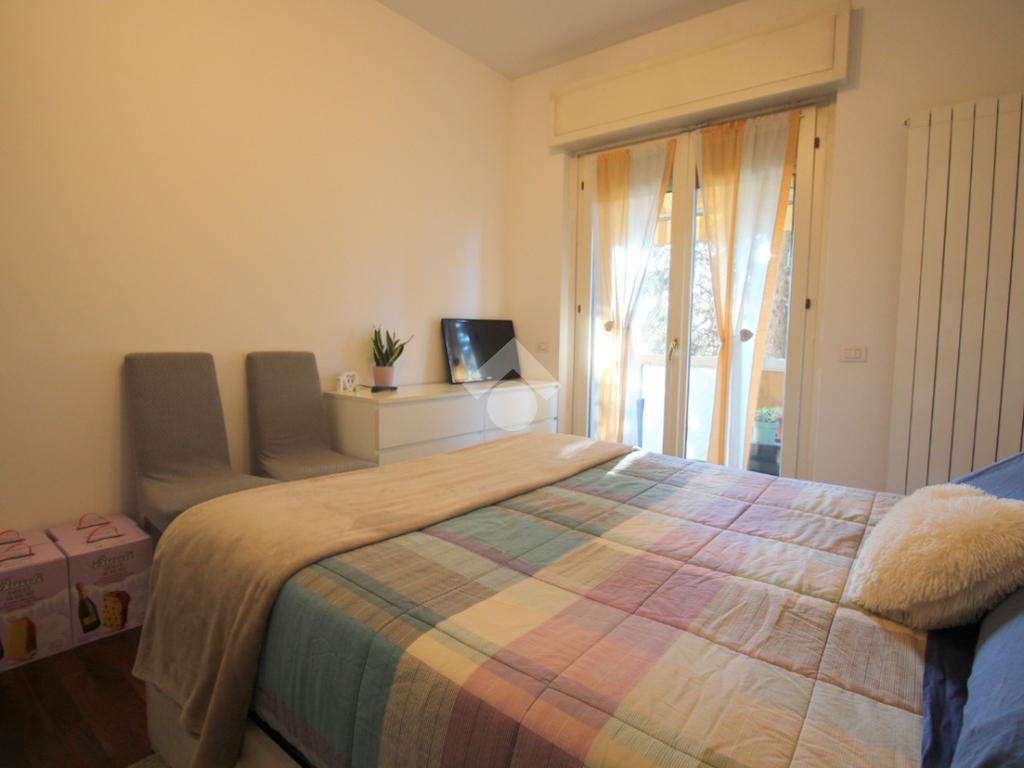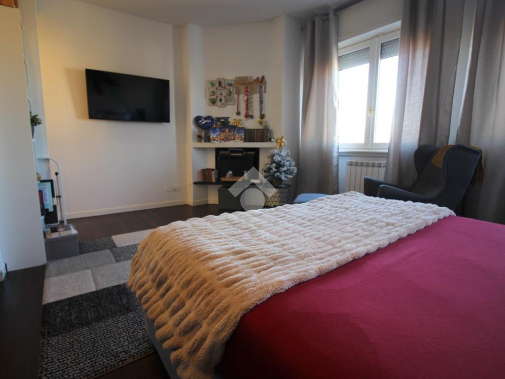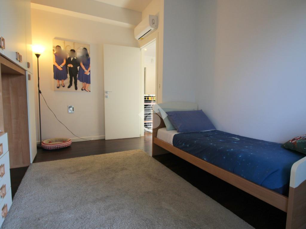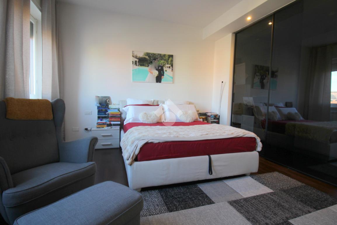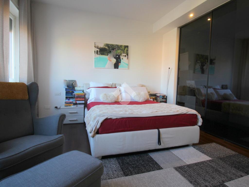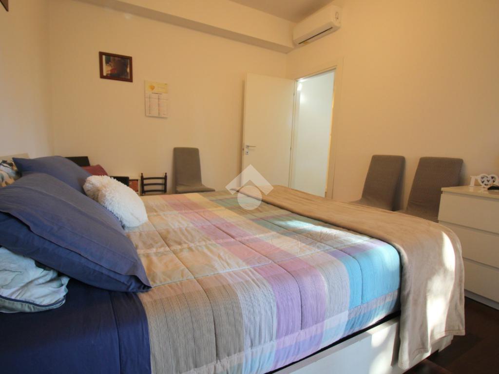 A completare la zona giorno è presente il bagno, dotato di sanitari, vasca e doccia, ristrutturato con finiture moderne, con porta finestra che conduce all’ampio balcone e la camera matrimoniale con possibilità di essere utilizzata come studio o locale hobby, anch’essa con l’uscita sul balcone.