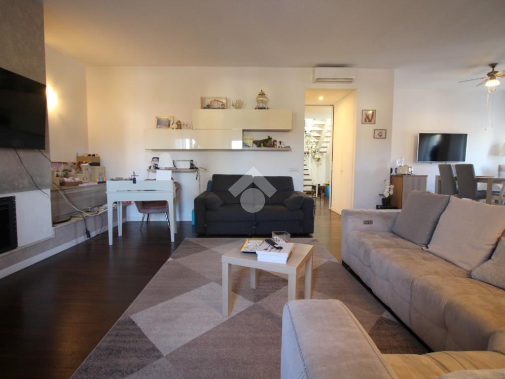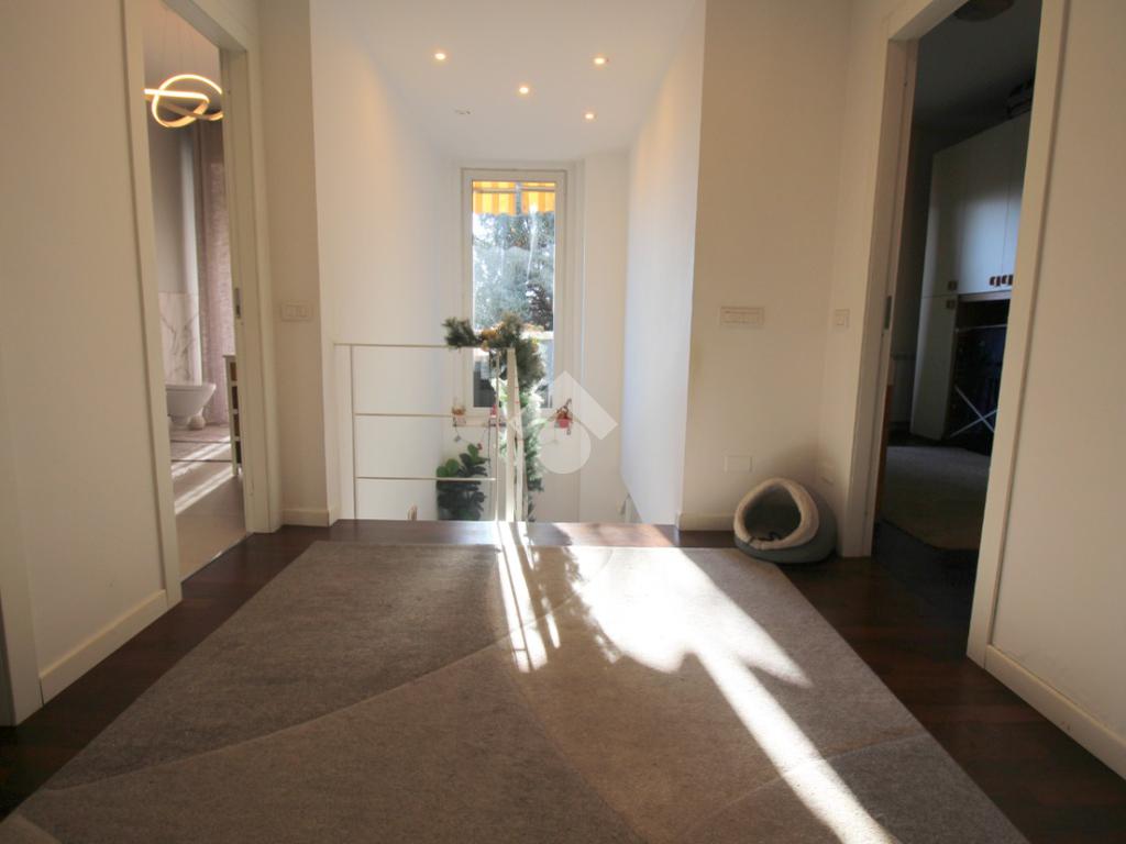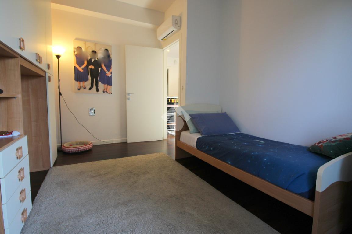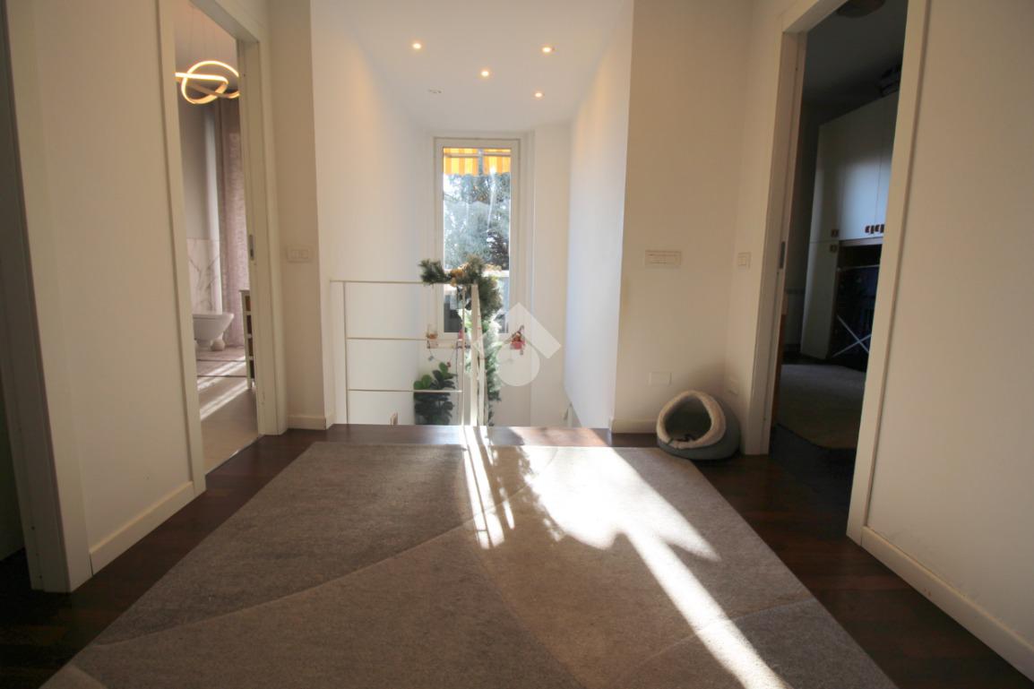 L'appartamento si sviluppa su una superficie di 228 mq disposti su due livelli, che lo rende perfetto per chi desidera godere di ampi spazi interni. L'ingresso conduce immediatamente alla zona giorno, composta da un soggiorno molto ampio, ideale per accogliere momenti di convivialità con familiari e amici, luminoso con doppia esposizione.