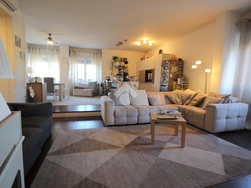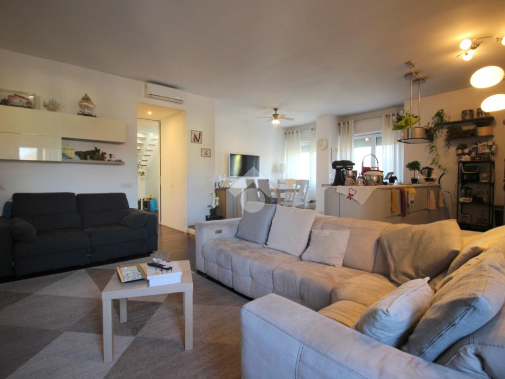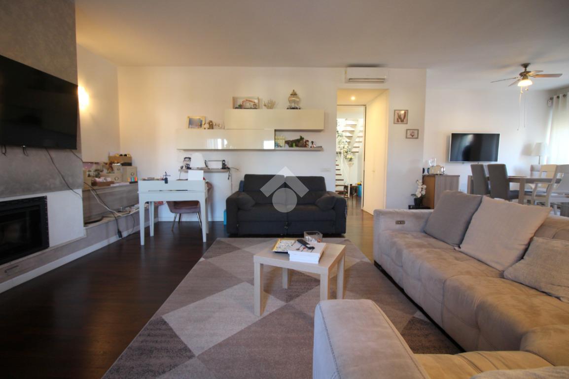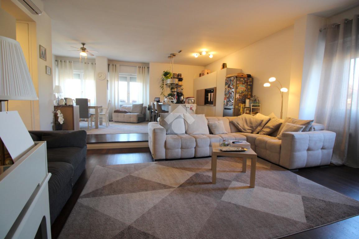L'appartamento si sviluppa su una superficie di 228 mq disposti su due livelli, che lo rende perfetto per chi desidera godere di ampi spazi interni. L'ingresso conduce immediatamente alla zona giorno, composta da un soggiorno molto ampio, ideale per accogliere momenti di convivialità con familiari e amici, luminoso con doppia esposizione.
