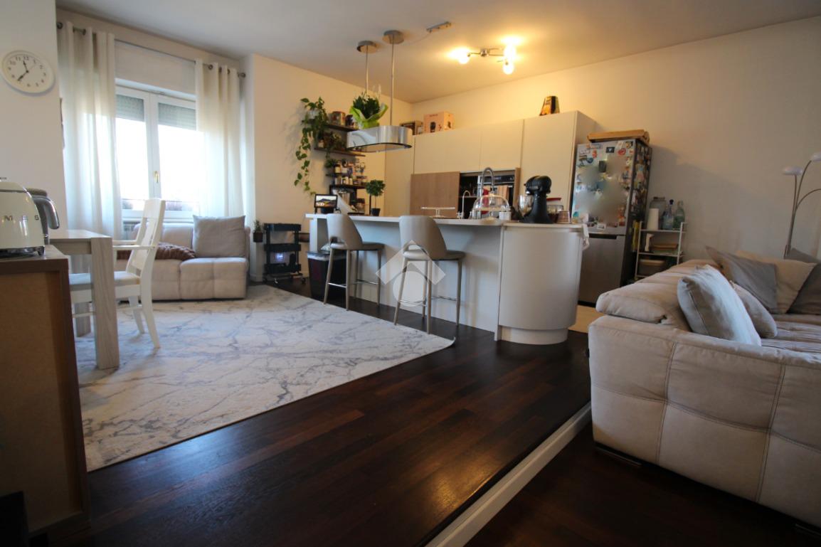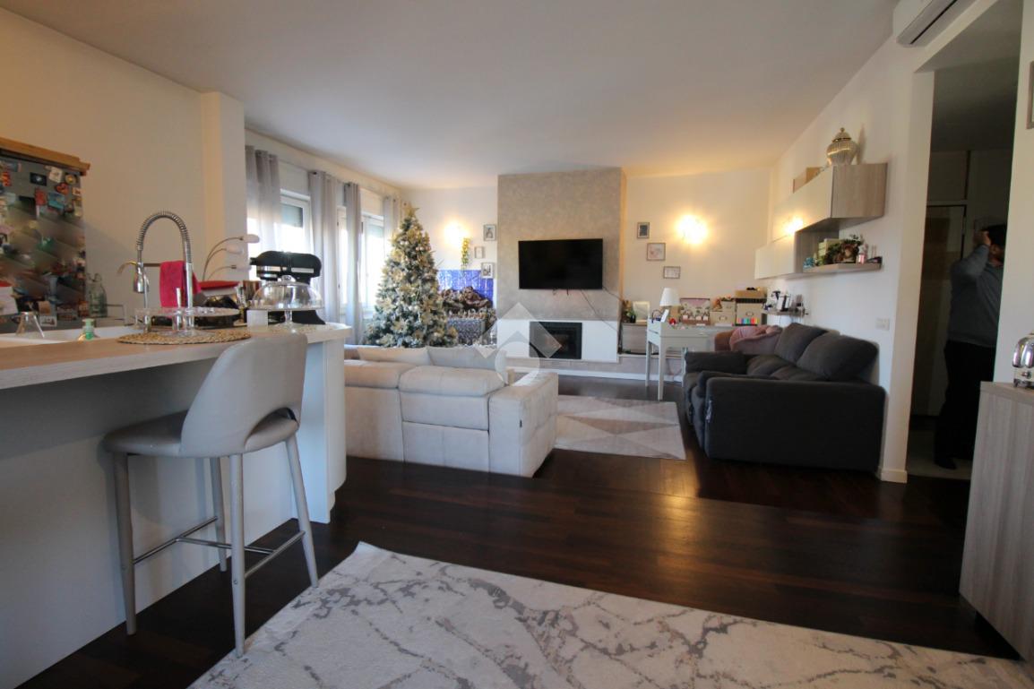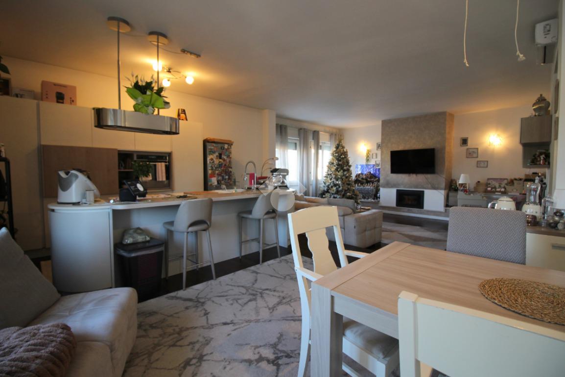 La cucina è a vista, con sufficiente spazio per ospitare una zona pranzo. La sua disposizione, permette di organizzare al meglio gli spazi, creando un ambiente moderno, funzionale e accogliente.