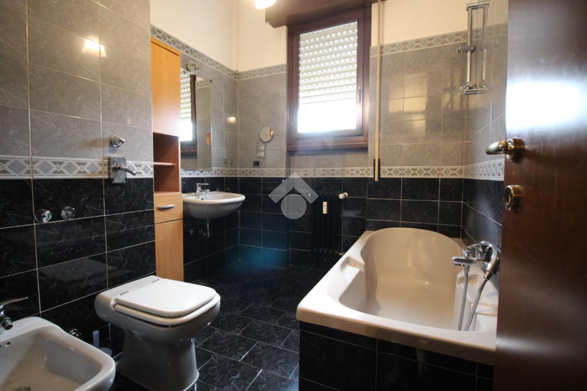 A completamento della zona notte è presente il bagno finestrato dotato di sanitari e vasca da bagno.