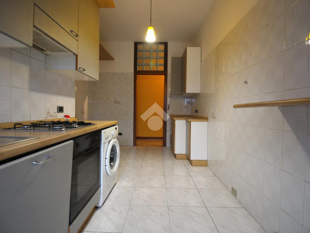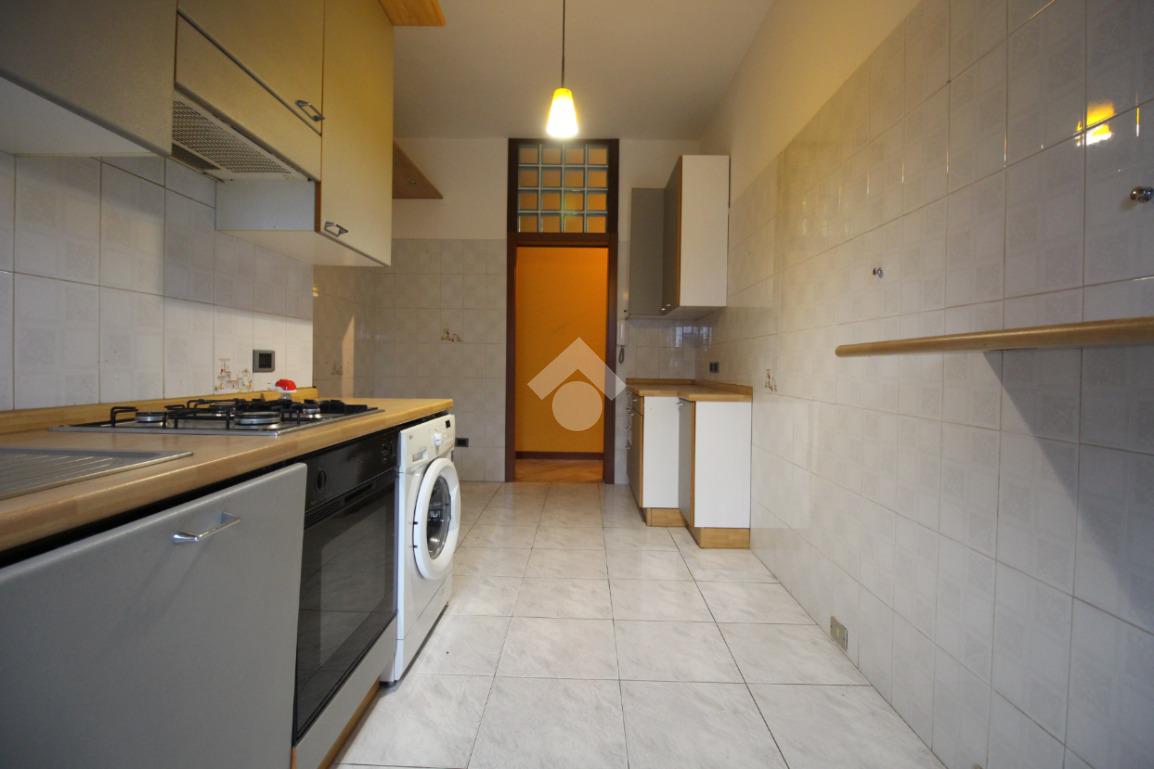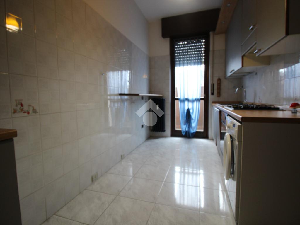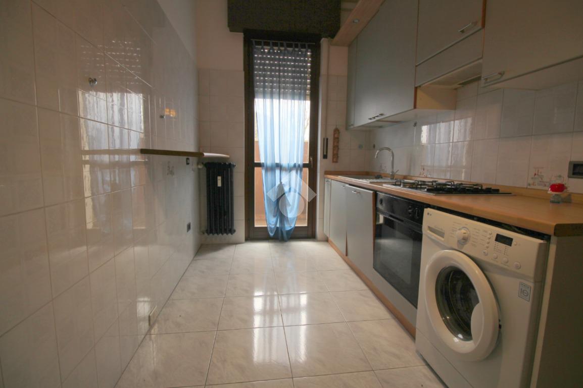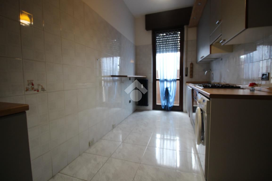 La cucina è abitabile e separata dal soggiorno, con sufficiente spazio per ospitare una zona pranzo. La sua disposizione, permette di organizzare al meglio gli spazi, creando un ambiente funzionale e accogliente, anch’essa dotata di porta finestra con uscita sul balcone.