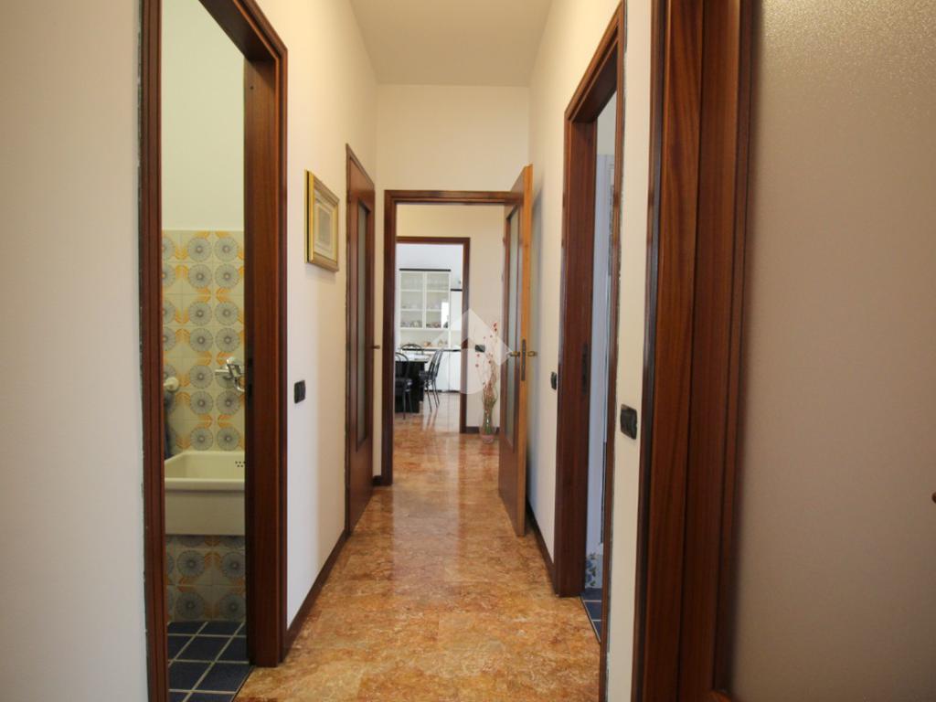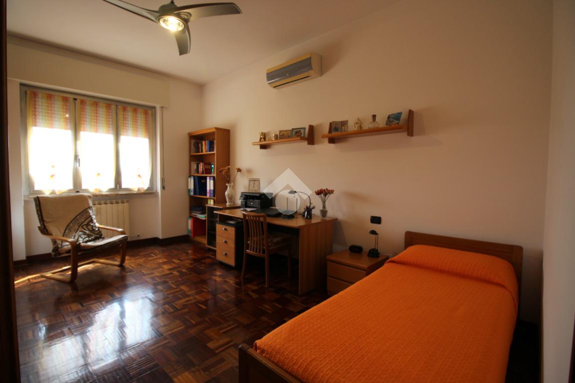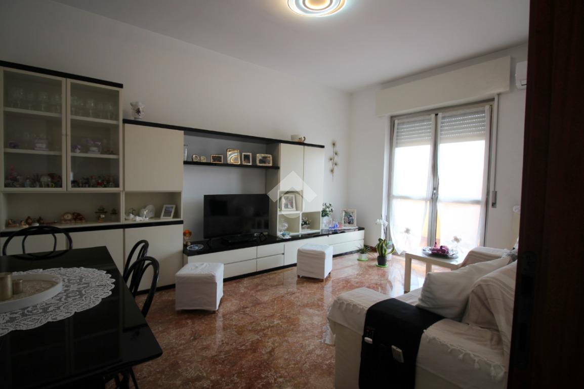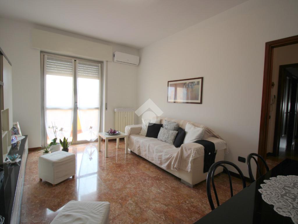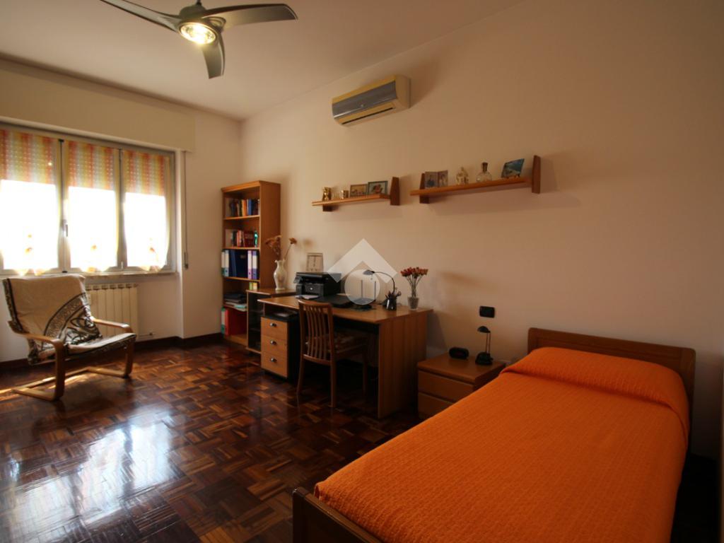 Dall'ingresso si accede al soggiorno dal taglio regolare che ospita un arredamento completo, dotato di porta finestra con uscita sul balcone ampio. La cucina è abitabile e permette di pranzare comodamente al proprio interno, anch’essa fornita di porta finestra con uscita sul balcone.