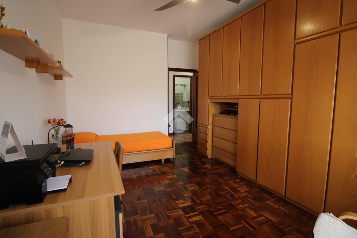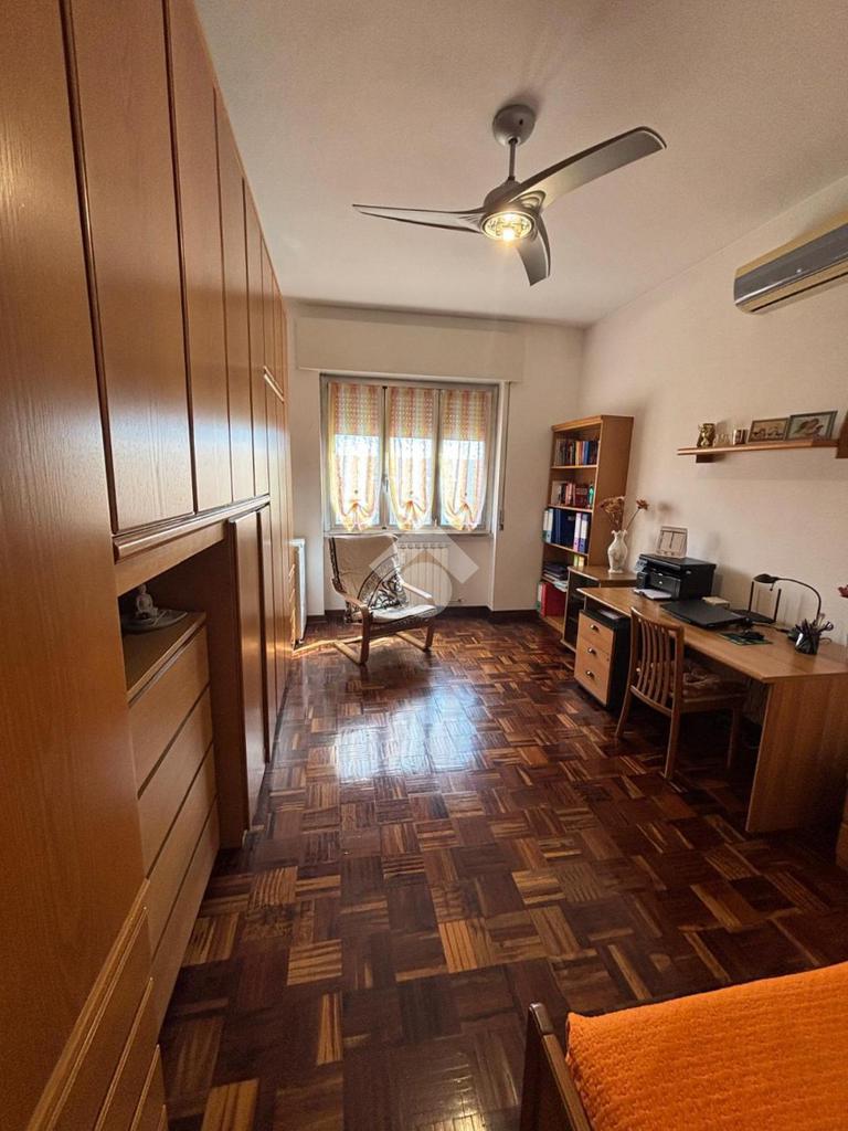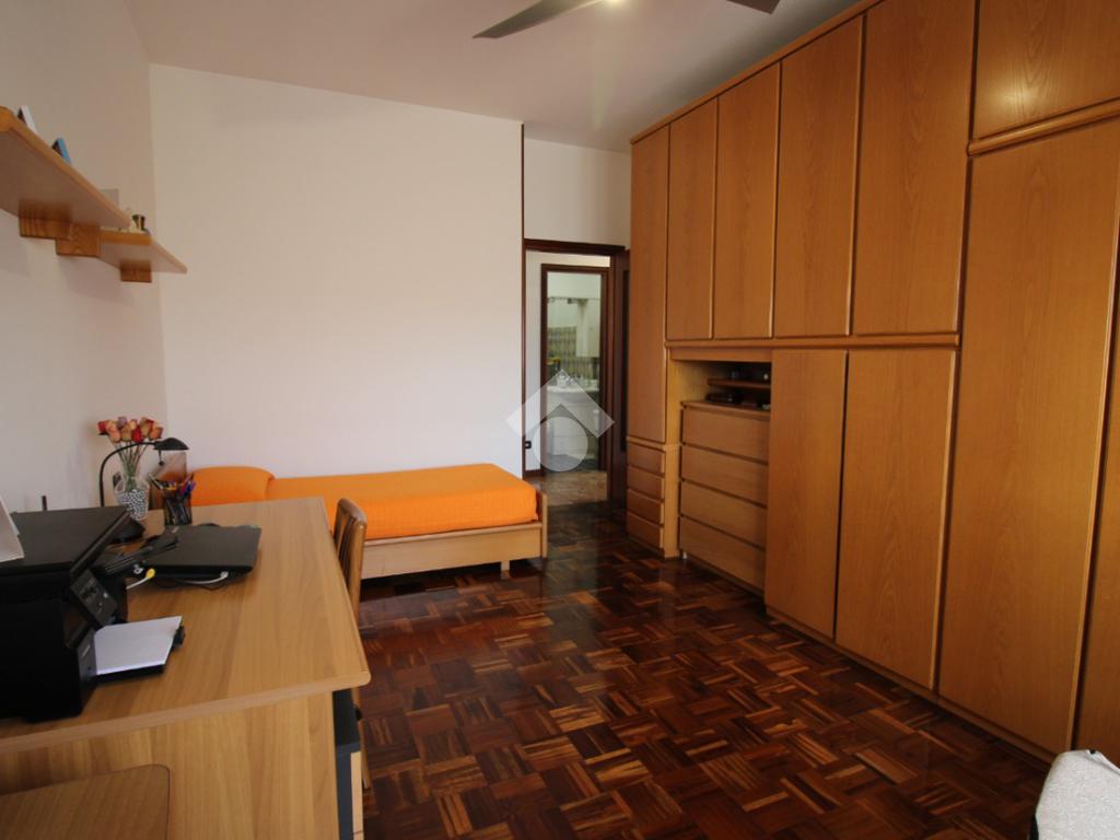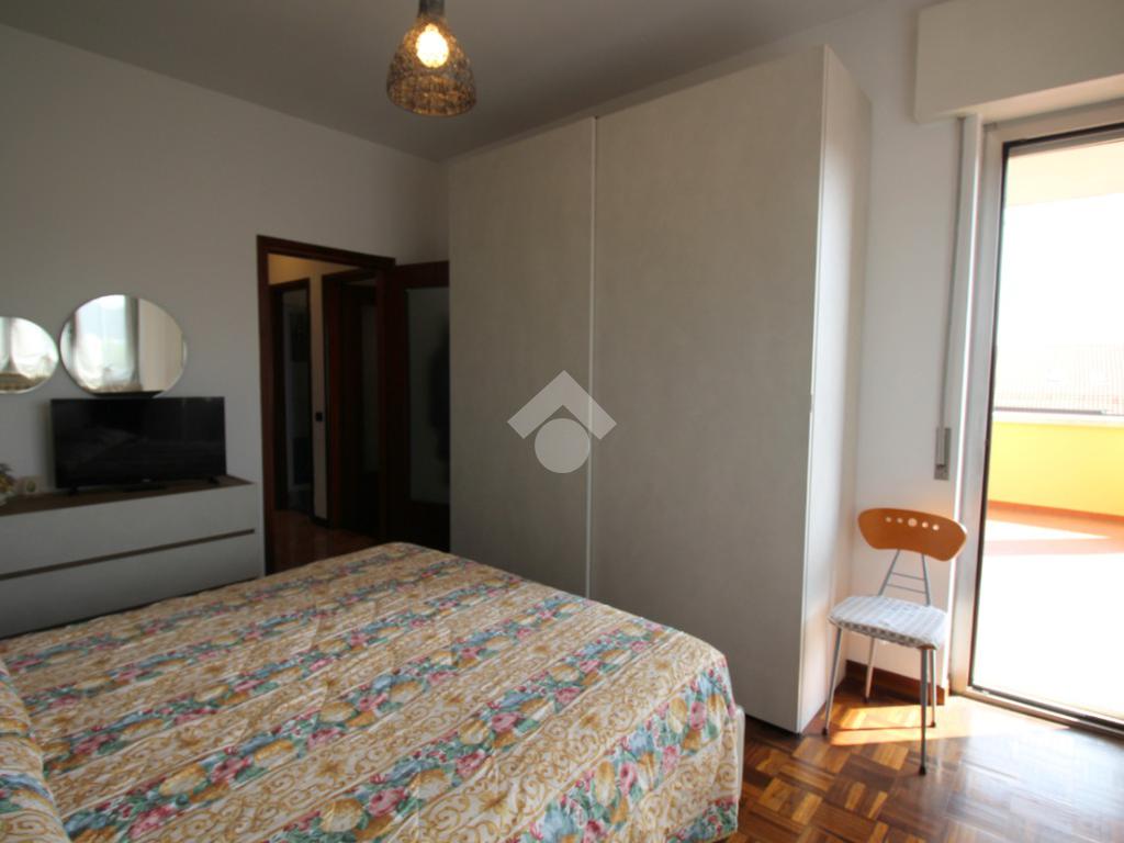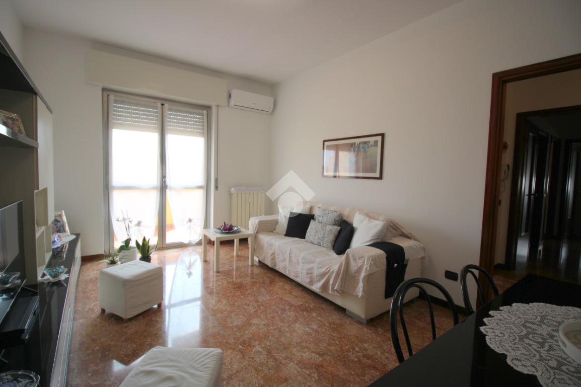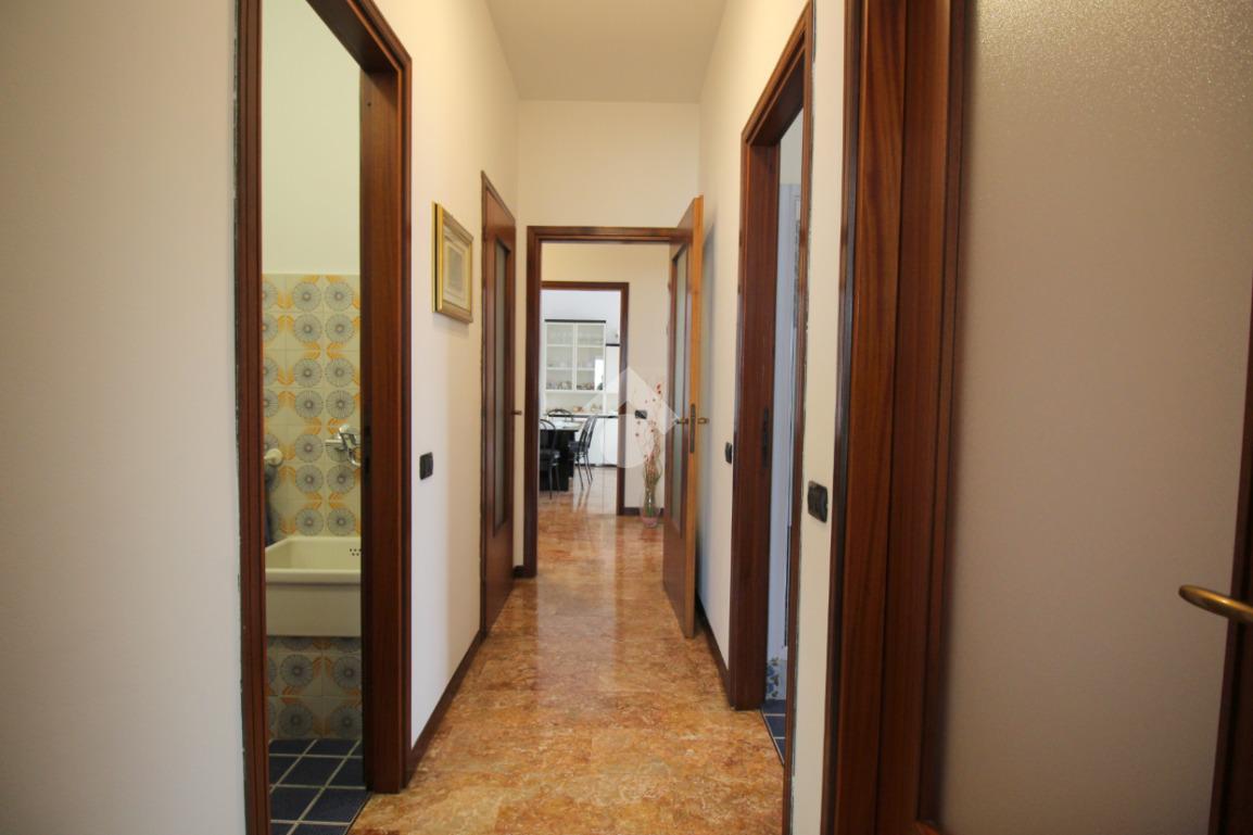Dall'ingresso si accede al soggiorno dal taglio regolare che ospita un arredamento completo, dotato di porta finestra con uscita sul balcone ampio. La cucina è abitabile e permette di pranzare comodamente al proprio interno, anch’essa fornita di porta finestra con uscita sul balcone.