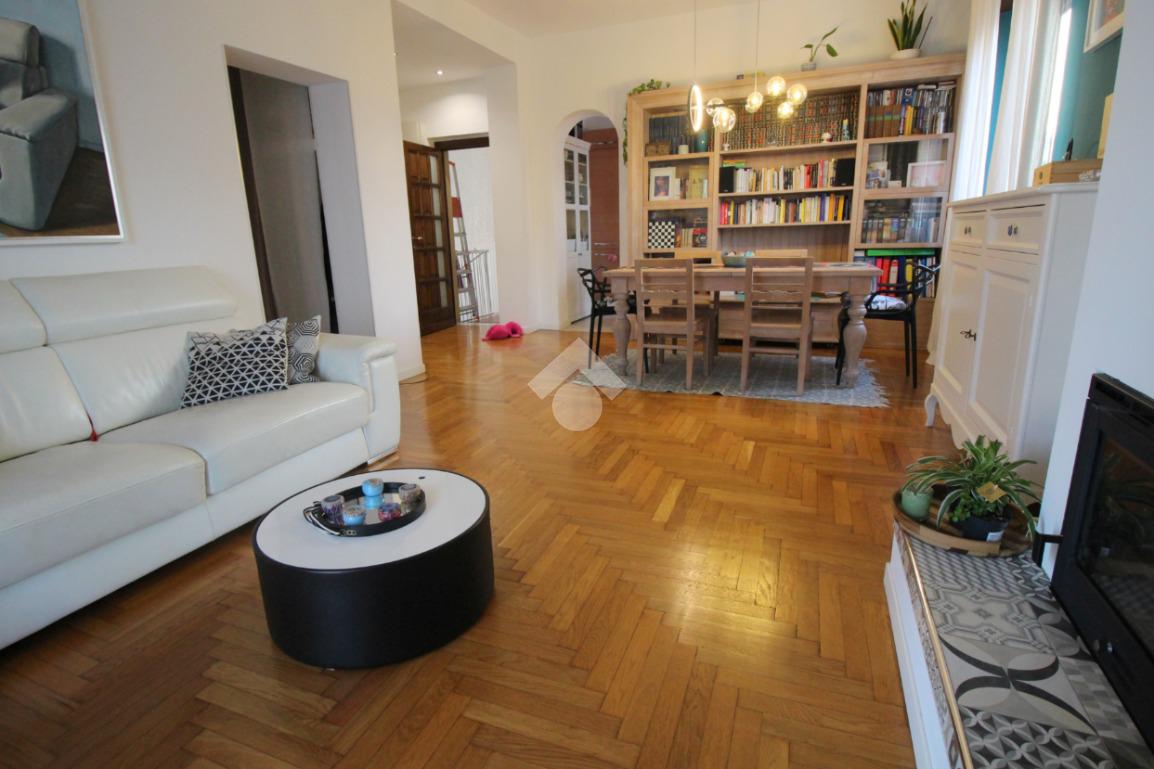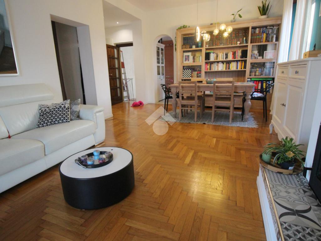 L'immobile al 1° piano è composto da: soggiorno doppio dotato di camino e reso luminoso dalla presenza del balcone, cucinotto anch'esso dotato di balcone, due ampie camere matrimoniale, bagno finestrato completo di sanitari e doccia e annessa pertinenza del sottotetto.